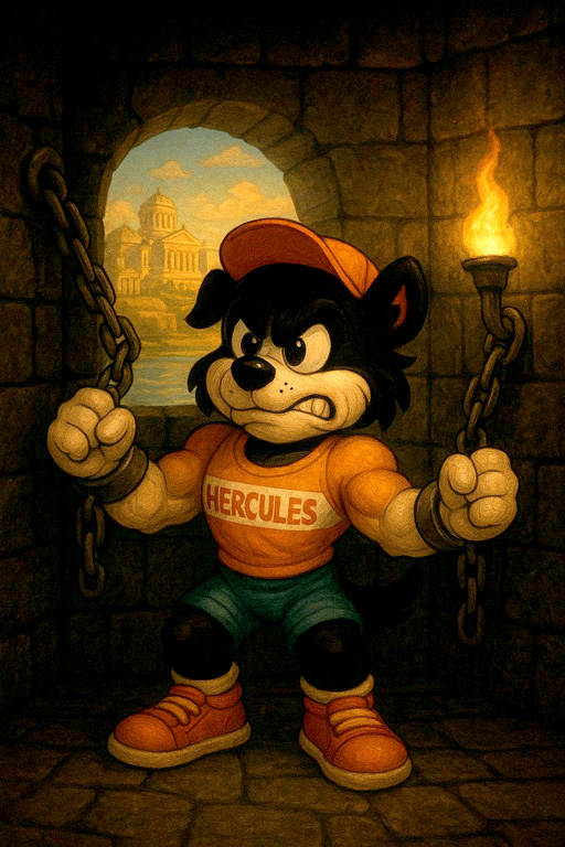 However, his departure from Olympus did not go unnoticed. The guards of Zeus captured him and threw him into a dark dungeon. Thick chains bound him to the stone walls. “You will remain here, rebellious son,” a voice thundered from afar. But they had forgotten one thing: Hercules was no longer just a hero